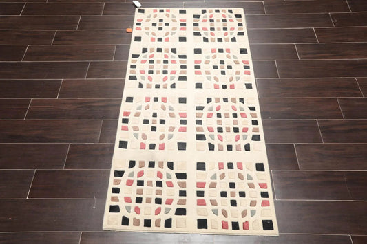 2'7' x 5' Hand Knotted Tibetan 100% Wool Graphic Modern Oriental Area Rug Cream
