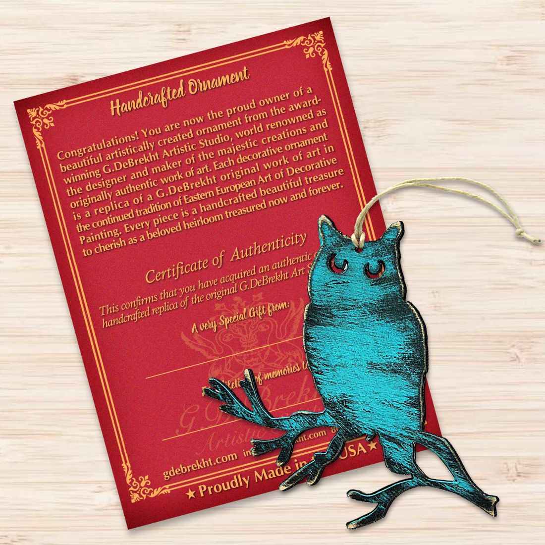 Ho Ho Ho It's the season for great Decor. Shop G. Debrekht for high-end ornaments such as Owl, or explore our collection of Wooden Christmas Ornaments and tree Decorations, all handcrafted in the USA